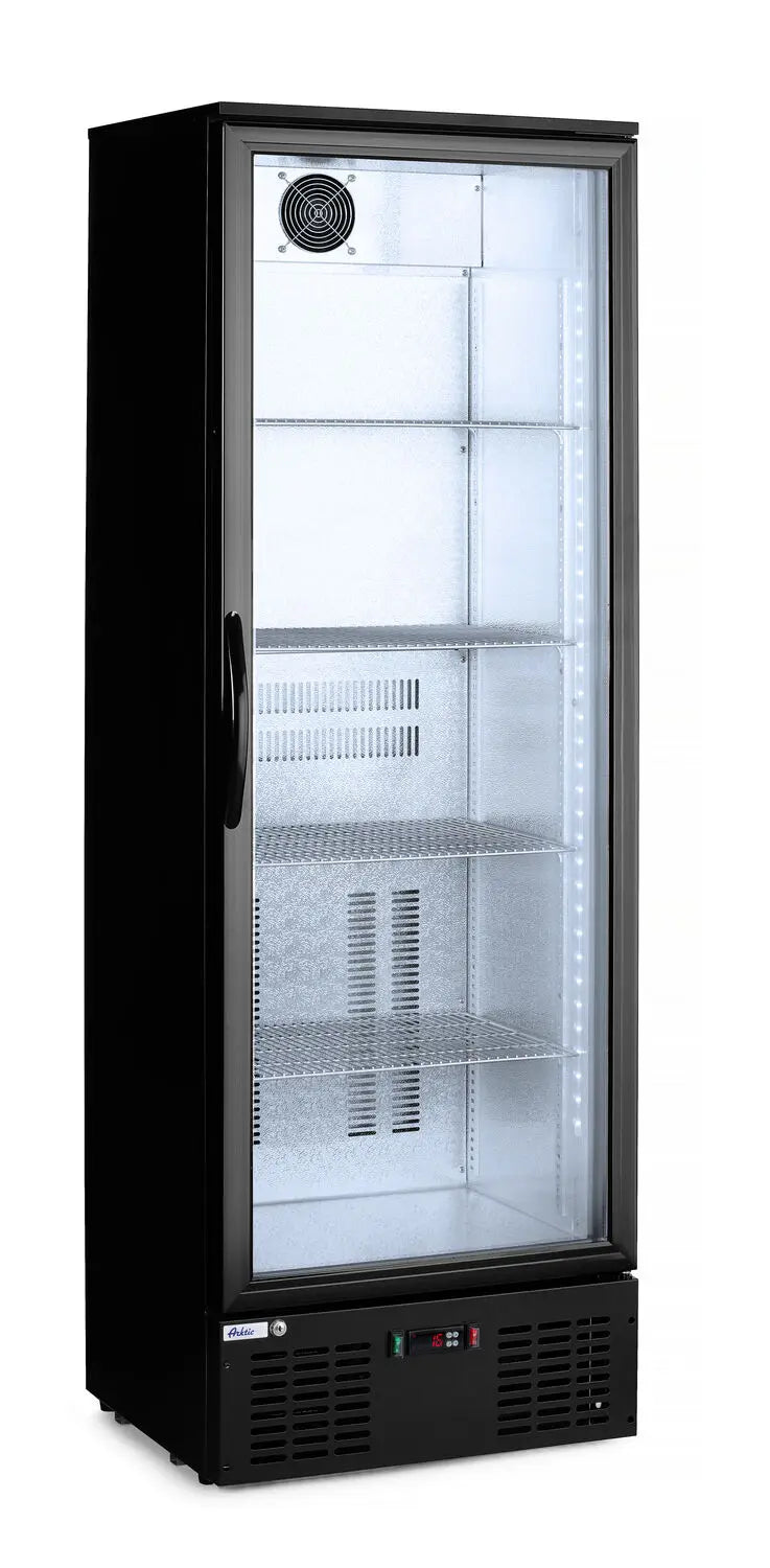 Rivestimento in acciaio verniciato a polvere nero. Camera in alluminio goffrato. Porte autochiudenti con doppi vetri e telai in plastica. Pannello frontale in vetro temperato. Serratura a chiave. Raffreddamento statico ventilato. Sbrinamento automatico. Unità posizionata sotto la camera. Intervallo di temperatura: 2-10 °C. Camera dotata di illuminazione a LED. Pannello di controllo elettronico con display digitale della temperatura. 4 piedini antiscivolo regolabili. Classe climatica: 4.
