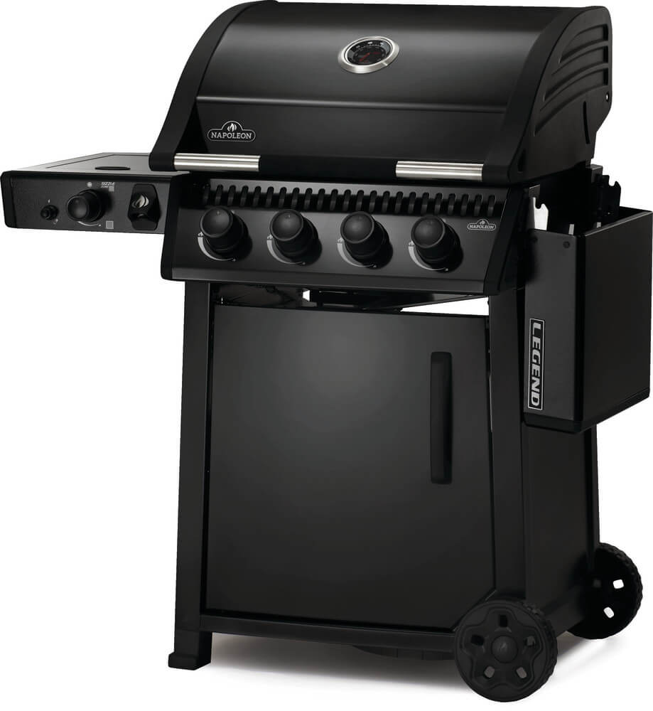 Il barbecue a gas propano Legend 425 con bruciatore laterale SIZZLE ZONE™ a infrarossi è un barbecue compatto con caratteristiche di alta qualità e un valore imbattibile. Acceso dal sistema di accensione istantanea JETFIRE che accende i bruciatori principali con un getto di fiamma facile e costante. Le griglie di cottura in ghisa smaltata e porcellanata permettono di ottenere una scottatura perfetta. Quattro bruciatori in acciaio inox forniscono un calore uniforme, facilmente controllabile e monitorato dall'indicatore di temperatura incorporato. Con il bruciatore laterale a infrarossi è possibile ottenere una perfetta scottatura da ristorante o preparare contorni mentre si griglia. Le robuste ruote consentono a questo barbecue di andare dove c'è movimento, mentre il ripiano laterale destro, facile da ripiegare e dotato di ganci per gli attrezzi e di un apribottiglie, fa sì che Legend risponda al vostro stile di vita e ai vostri spazi.